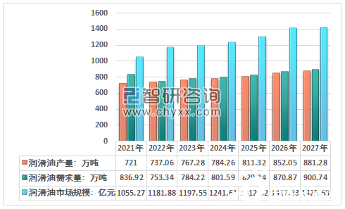 預(yù)計到2027年潤滑油產(chǎn)量將達到881.28萬噸,潤滑油消費量將達到900.74萬噸,市場規(guī)模將達到1425.68億元。